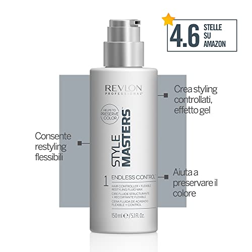 REVLON PROFESSIONAL STYLE MASTERS DOUBLE OR NOTHING ENDLESS CONTROL, Cera per lo styling dei capelli 24Ore di tenuta, Cera Texturizzante, 150ml
