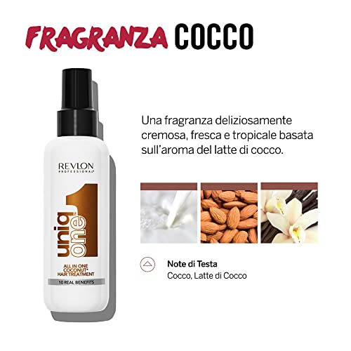 Revlon Professional UniqOne Coconut, Trattamento per Capelli Senza Risciaquo, All in One, Idrata, Protegge e Ripara (150ml), Fragranza al Cocco