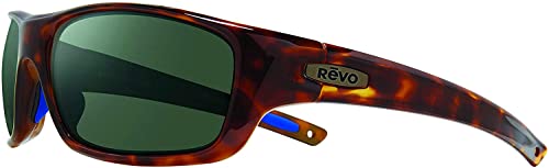Revo Occhiali da sole Jasper: lente in cristallo polarizzato con grande cornice rettangolare avvolgente, montatura tartaruga con lente verde fumo