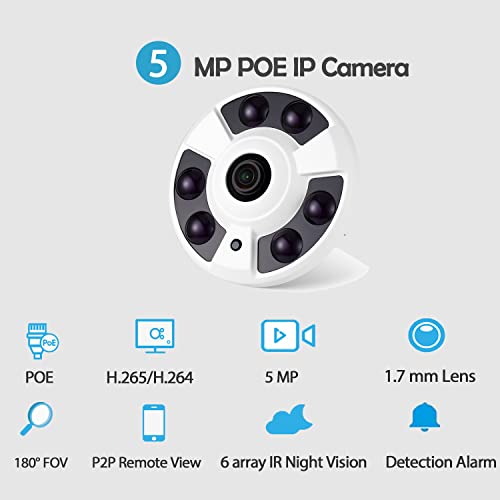 REVODATA 5MP HD Fisheye POE IP Camera,Telecamera sicurezza Indoor CCTV Obiettivo 1,7mm 180° 6 Array LED IR Visione notturna P2P H.265 Rilevamento del movimento Telecamera (IF02-P-HS Bianco)