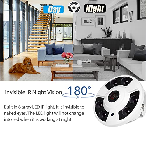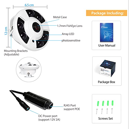 【 Obiettivo Fisheye da 1,7mm 】Questa fotocamera è dotata di un microfono incorporato, catturerà i suoni intorno alla fotocamera, fornendoti informazioni aggiuntive per la tua sicurezza. L'obiettivo fisso con obiettivo fisheye da 1,7 mm su questa fotocamera offre un angolo di visione di 180° per coprire e proteggere un'area più ampia, puoi lasciare l'intera stanza/spazio sotto i tuoi occhi tramite una fotocamera.