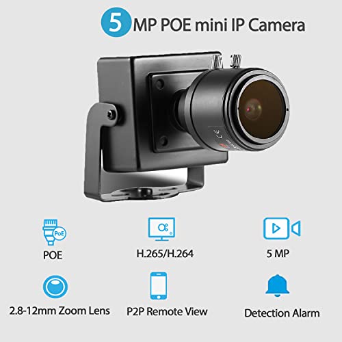 REVODATA Mini Telecamera IP POE da 5MP (2880x1616P), Obiettivo Zoom Manuale 2,8-12 mm,Telecamera di Sorveglianza Interna P2P H.265 CCTV Video camera Rilevamento del movimento (I712-POE-HS)