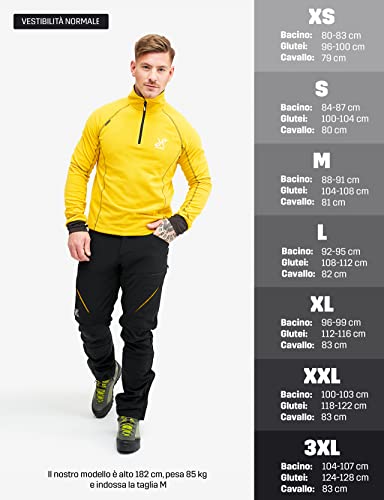 RevolutionRace Hiball Pants, Pantaloni da Uomo, durevoli a aerata per Trekking e Altre attivitá all'Aria Aperta, Black/Yellow, L