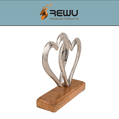 ReWu Espositore decorativo a forma di cuore doppio cuore, in metallo su base in legno, decorazione a forma di cuore