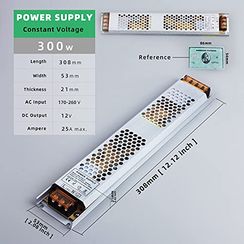 REYLAX Trasformatore LED 12V 300W 25A, Alimentatore Interruttore AC to DC Trasformatori Adattatore, Alimentatore in Tensione Costante, Driver LED Convertitore di Bassa Tensione per Applicazioni LED