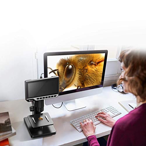 RFElettronica MT315 2000X Microscopio Digitale a Doppia Lente da 7 pollici HD IPS Lente Multipla per osservazione di circuiti/celle, con Supporto, sorgente luminosa a LED, Visualizzazione computer