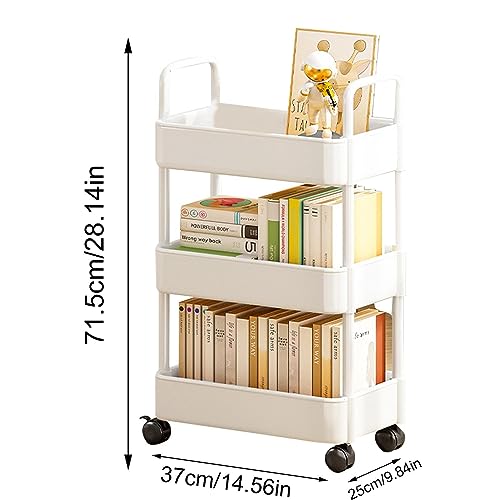 RFSHOP Carrello per Libri, Carrello Durevole a 3 Livelli, Carrello salvaspazio con Ruote, Carrello per Libri, Carrello per libreria Mobile per organizzatore di uffici Domestici