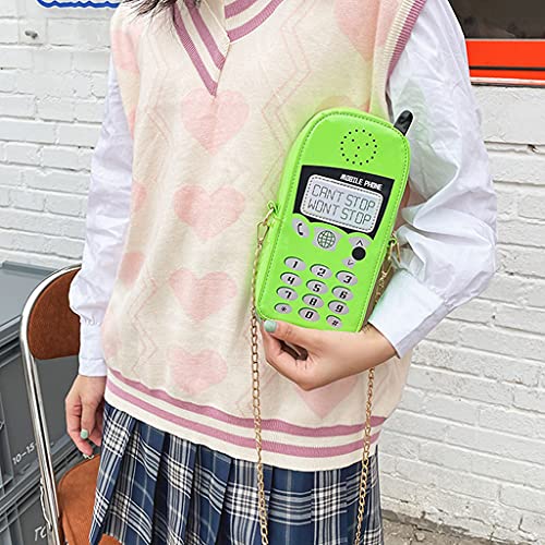 RG-FA Divertente borsa a forma di telefono cellulare con borsa a tracolla a catena, Verde, Taglia unica
