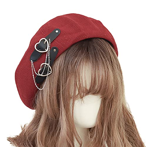 RG-FA Dolce Fresco Punk Berretto Lolita Cappello Carino Ragazze Cuore Fibbia JK Cappello Giapponese Beanie JK Cappello Kawaii Preppy Stile Ragazza Beret - Nero