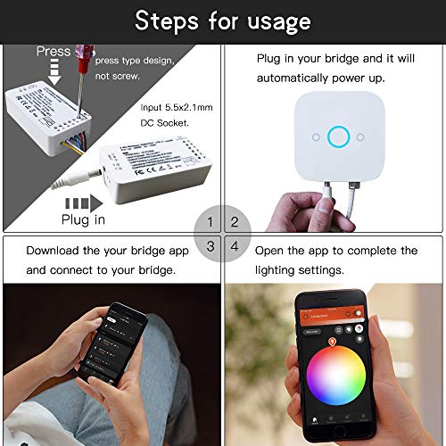 Lunghezza della striscia di controllo LED: Il controller Zigbee On Off è adatto per strisce LED 5 m o anche LED 2 m, LED 3 m e LED 4 m. Naturalmente il controller LED 5050 è compatibile. Un controller ZigBee RGBw per la tua striscia RGBW.