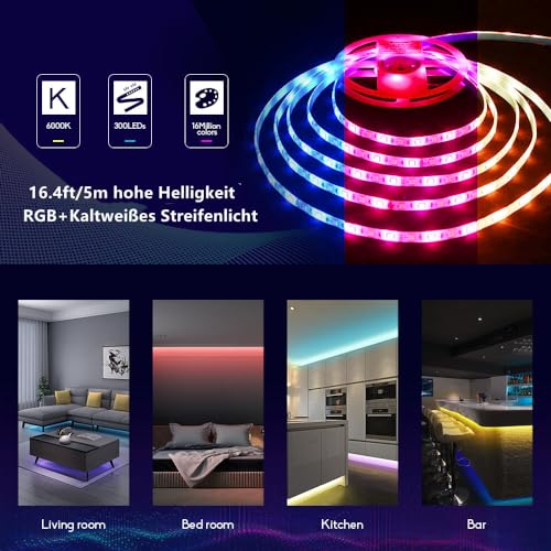 RGBWW striscia LED 5m,12V RGB bianco freddo bianco caldo (2700K-6000K) dimmerabile,450 LED SMD5050,flessibile,6 fili RGBCCT per illuminazione ambientale,Lightstrip Plus,solo RGBWW LED Strip Lights