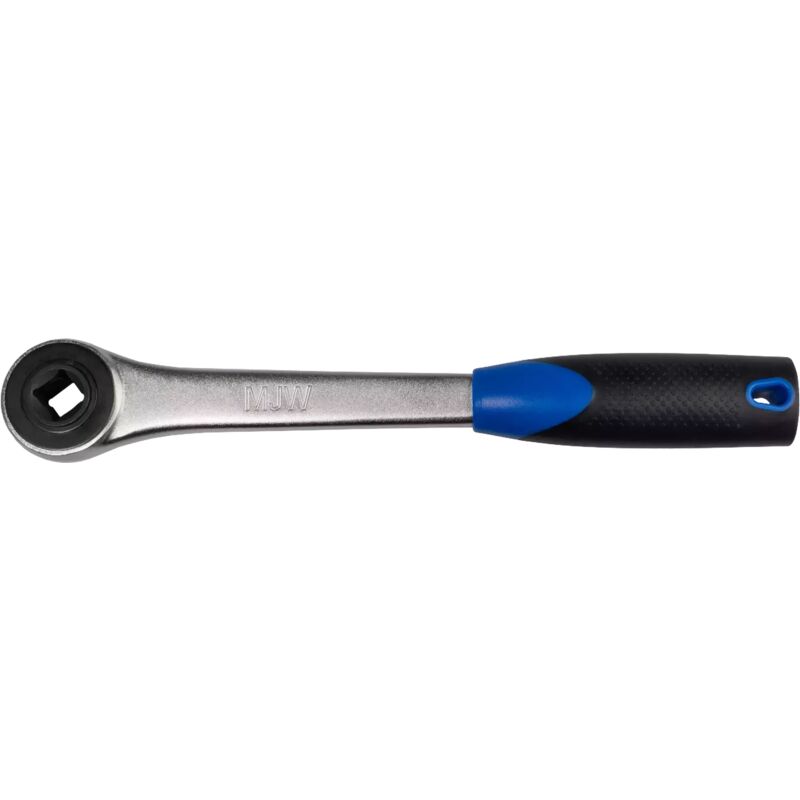 Uno strumento professionale, spesso utilizzato per tensionare le seghe nelle macchine forestali come la sega a nastro Wood Mizer, Un numero ridotto di denti garantisce una coppia elevata, Uno dei cricchetti più potenti sul mercato degli utensili, utilizzato da professionisti che apprezzano la qualità e la durata del strumenti, disponibili anche nei set di strumenti MJW. Il cricchetto interno funziona con una chiave in lega per collegamenti a vite (codice prodotto: 126009A).
