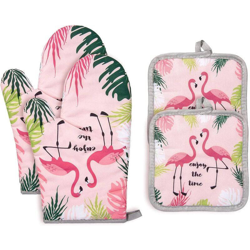 Il set da 4 pezzi include 2 guanti da forno (11 x 6,7 pollici) e 2 supporti per pentole (6,7 pollici x 6,7 pollici). Manufatto realizzato in resistente poliestere con imbottitura 100% cotone. riscaldare fino a 356° F (180°C), che protegge bene mani e polsi dalle ustioni. I guanti da forno sono facili da mettere su e per rimuovere grazie a;