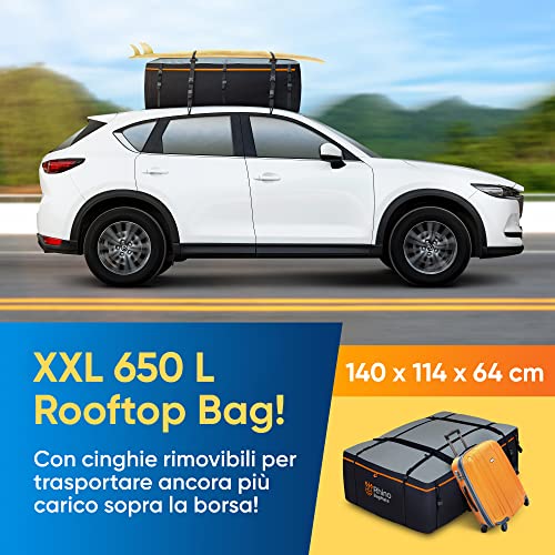 Rhino BagMate XXL 650L (23 piedi cubi) Rooftop Bag, Borsa Portabagagli Universale per Auto con Tetto, Box Morbido 100% Impermeabile con Protezione UV, Portatutto Molto Resistente e Sicuro, Portapacchi