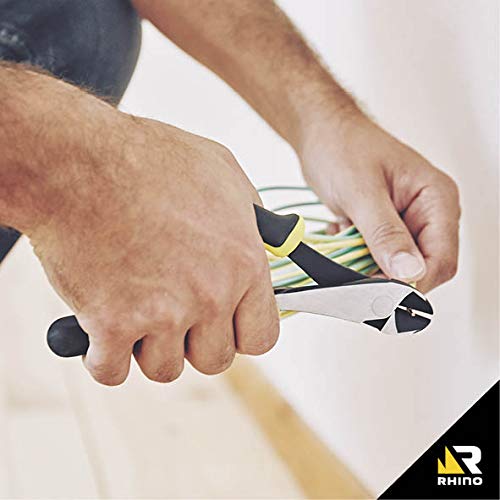RHINO Pinze da taglio diagonali con manico angolato, pinza universale per taglio laterale, 180 mm, cromo vanadio, manico angolato di 25 gradi per una presa facile, lunghezza 180 mm
