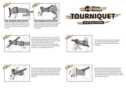 RHINO RESCUE Lacci Emostatici, Kit di Pronto Soccorso per Emorragie D'emergenza, Militari, Paramedici D'emergenza Salvavita per Combattimento All'aperto con Argano in Metallo, 4 Pezzi
