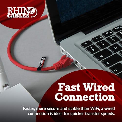 Rhinocables Cavo di rete Ethernet CAT5e ad alta velocità per LAN, antigroviglio, con connettore RJ45, ideale per Internet, router, modem, Smart TV, PC e laptop, rosso (1, 0,5 m (50 cm)