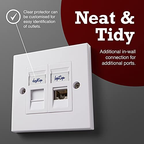 Rhinocables Piastra Ethernet Faceplate Singola e Doppia Presa di Rete RJ45 murario Vari CAT5e CAT6 CAT6A Gigabit 1 2 4 Porte (1 Port, CAT6A)