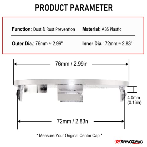 Rhinotuning 4 coprimozzo da 76 mm, diametro 76 mm, diametro 72 mm, colore argento, per SSR Watanabe RS-Eight
