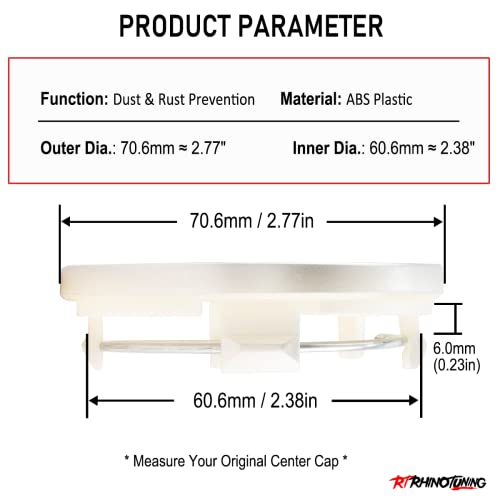 Dimensioni: copricerchi diametro esterno 70,6 mm ± 1 mm, diametro interno 60,6 mm ± 1 mm, lunghezza della scheda 17 mm ± 1 mm! Si prega di misurare (importante! Si prega di misurare le dimensioni dei vostri cerchioni o vecchi coprimozzi prima di ordinare)