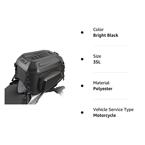 Rhinowalk Bagagli da viaggio per moto, borsa espandibile per moto, 35 l, impermeabile per tutte le stagioni/bagagliaio/portapacchi con cinghie Sissy Bar, nero carbonio