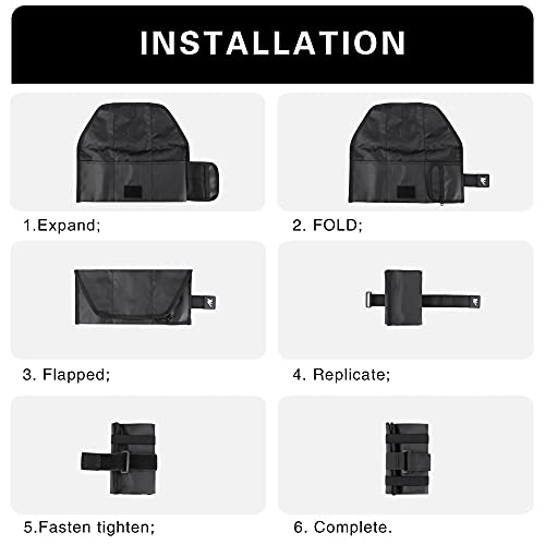 Mantieni i tuoi articoli in ordine: 3 scomparti, tasca laterale con cerniera e tasca in rete, posizionare gli strumenti di riparazione in modo ragionevole, facile da mettere e togliere. Cinghia elastica interna per fissare gli strumenti essenziali. Questa borsa multifunzione per attrezzi si piega facilmente con tre alette. Due fasce elastiche all'esterno assicurano che lo strumento non cada fuori.