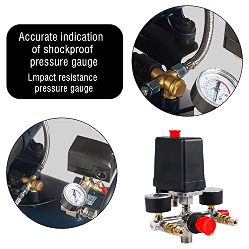 Rhitchy Pressostato Compressore Aria 220V/20A: Pressostato Compressore con 2 Manometro 90-120PSI, Ricambi Compressore Aria Filettatura esterna 1/2"