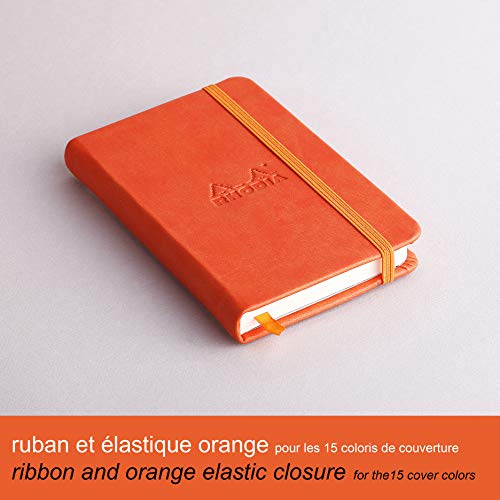 RHODIA 118634C - Taccuino Rigido Mandarino - A6 - 192 pagine - Carta Clairefontaine Uni Avorio 90 g/m - Segna-pagina, Chiusura con elastico - Copertina Simil Cuoio - Collezione Rhodiarama
