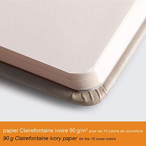 RHODIA 118735C - Taccuino Rigido Arancione - A5 - 192 pagine - Carta Clairefontaine Uni Avorio 90 g/m - Segna-pagina, Chiusura con elastico - Copertina Simil Cuoio - Collezione Rhodiarama