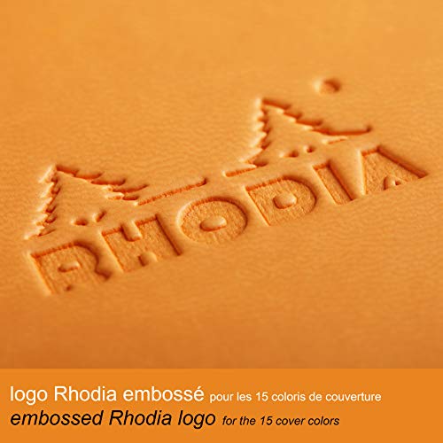 Rhodia 118755C Taccuino rigido Rhodiarama, A5 (14,8x21 cm), 192 pagine, a righe, carta Clairefontaine avorio 90 g/m², segnalibro, chiusura con elastico, copertina in similpelle arancione
