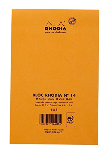 Rhodia 14200-O, 80 pagine, dimensioni 11 x 17 cm, colore: arancione, confezione da 10