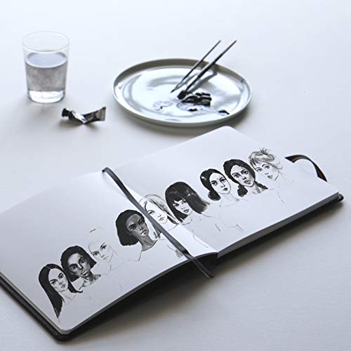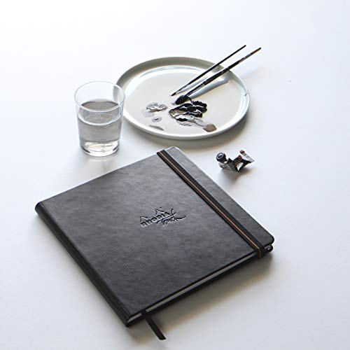 Rhodia Touch 116127C Taccuino con copertina rigida in similpelle nera 21x21 cm, 64 pagine, carta bianca liscia Lavis Tecnique Clairefontaine 200 g/m², chiusura con elastico, segnalibro.