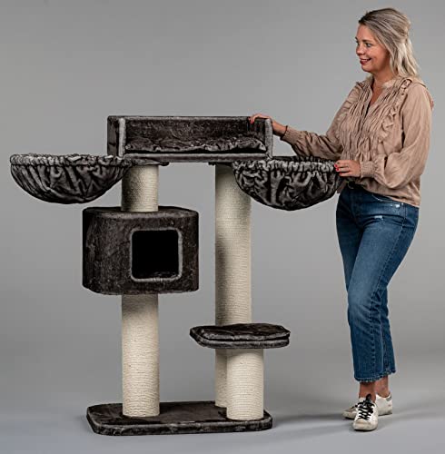 RHRQuality Tiragraffi stabile per gatti di grandi dimensioni Devon Rex - XXL - con tronchi 70 x 50 x 120 cm e stabile 30 kg per gatti grandi e pesanti (Plus, tortora)