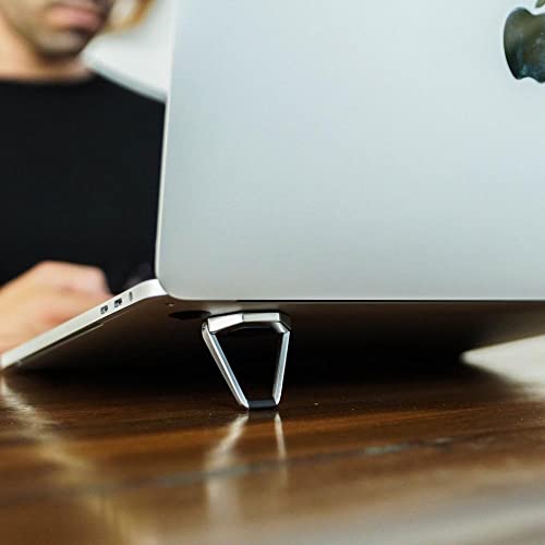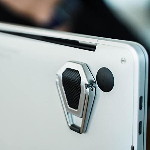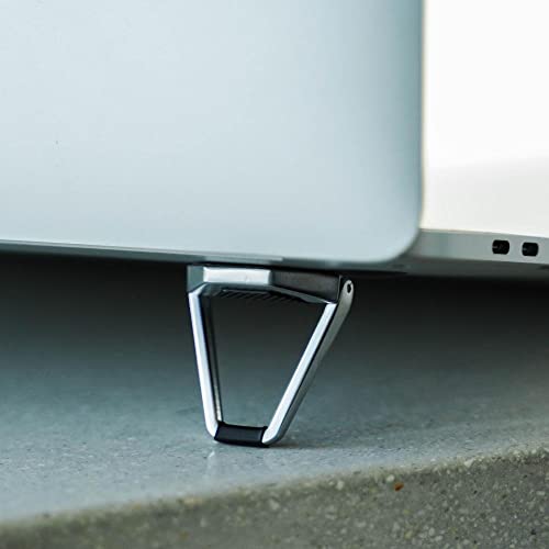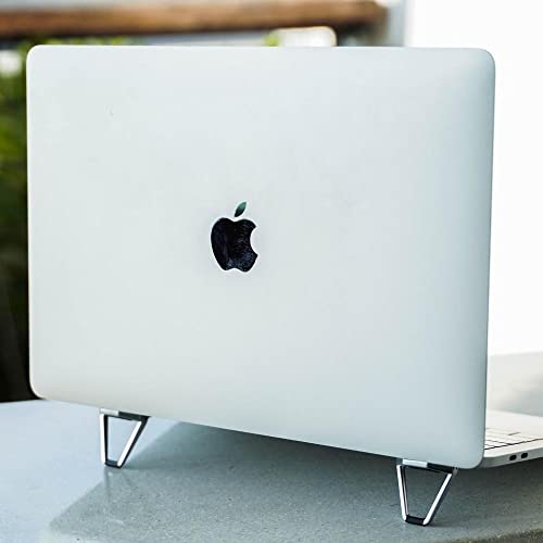 [Un fissaggio sicuro]: Questo supporto per computer portatile è costruito in alluminio, che lo rende un supporto leggero ma robusto. In questo modo è possibile supportare sia computer portatili che tablet. Inoltre, il cuscinetto in gomma presente sul supporto serve a evitare graffi sulla superficie della scrivania. Il materiale adesivo consente di fissarlo e rimuoverlo facilmente dal notebook. Riattaccare il poi con la stessa efficacia.