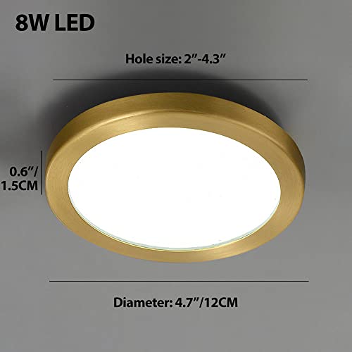 Riankh Faretto LED da incasso a soffitto Faretto da pannello rotondo ultrasottile Luce da incasso in ottone dorato antiruggine Soggiorno 3000K / 6000K Plafoniera for cucina Isola Agriturismo Bagno Cor