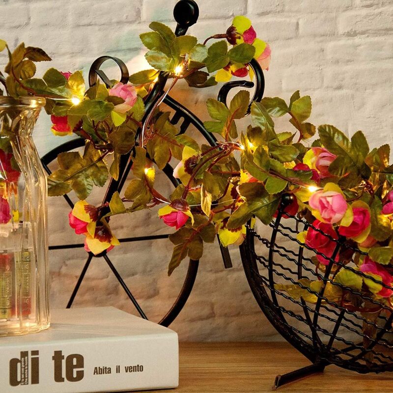Ghirlanda di luci a 20 LED in seta sintetica, con rose e fiori, 2 m, per piante verdi, piante di simulazione, ghirlanda di rattan, ghirlanda di luci notturne, funzionamento a batteria, USB, luce bianca calda, per giardino di casa, matrimoni, decorazione Specifiche tecniche: Nome dell'articolo: stringa di luce artificiale rosa Garland Materiale: manico in plastica + foglie verdi artificiali e rosa + mini LED + filo splitter avvolto Colore della luce: bianco caldo. Numero di LED: 20 pezzi. Quantità di rose: 17 teste di fiori. Circa 42 pezzi di fiori. Alimentazione: 2 batterie AA (non incluse). Lunghezza: 2 m. Colore dei petali: rosa + bianco, rosso tramonto + bianco, viola intenso + viola chiaro, bianco, rosso rosa + rosa. Modalità on/off. Potenza: alimentato tramite USB, batteria Occasione: con questa bellissima luce bianca calda a stelle con affascinanti effetti di luce, puoi decorare la sala da pranzo, la camera da letto, il bar, il club, il giardino, il matrimonio e i luoghi per