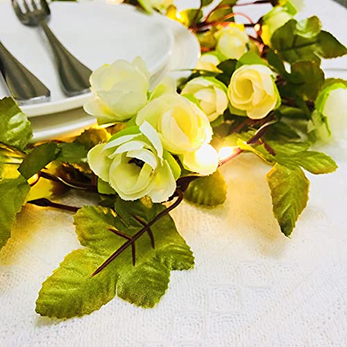 Riaxuebiy Ghirlanda luminosa artificiale con fiori di rosa 42 fiori a vite ghirlanda fata lampada a batteria alimentata per Natale festa di nozze decorazione (batteria, bianco)