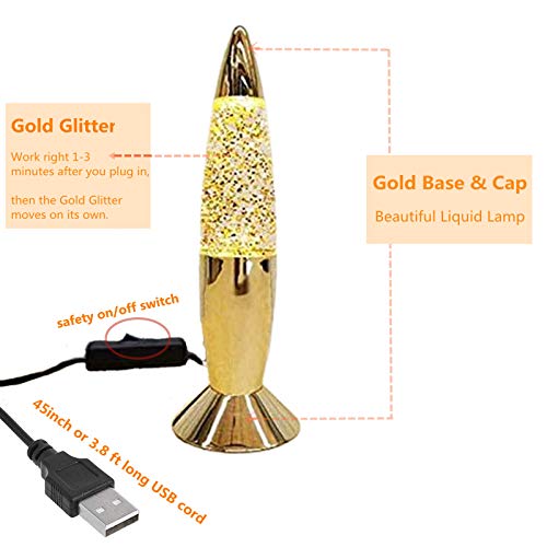 Riaxuebiy Lampada di Lava Glitterata 7,28 Pollici Mini Luce a Razzo Luce Notturna Scintillante Cambia Colore Luce D'atmosfera di Movimento con USB Regalo Cavo(B-oro)