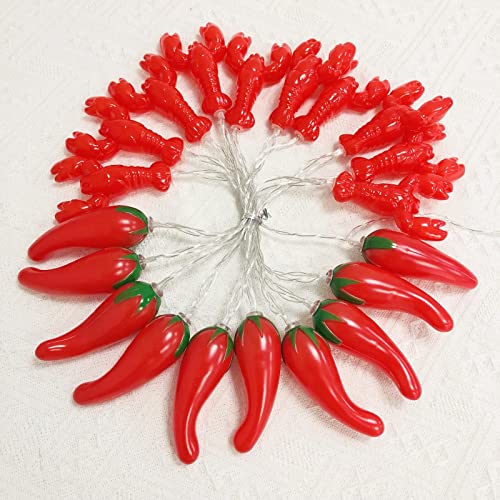 Decorazione unica di peperoncino aragosta - Lanterne di peperoncino gamberetto rosso Stringa di luce decorativa, Luce bianca calda, Dimensioni Chili: 8,3 cm * 2,9 cm / 3,26 pollice * 1,14 pollice. Dimensioni gamberetto: 8.2 cm*5 cm/3.22 pollice *1.96 pollice