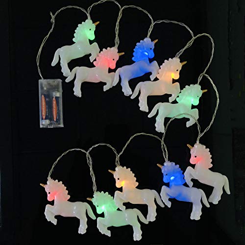 Funzionamento a batteria: richiede 2 batterie AA (non incluse). Cavo di 150 cm di lunghezza, 10 luci a LED per motivo unicorno. Puoi infilarle lungo la tua recinzione, decorazioni per alberi di Natale, luci notturne.
