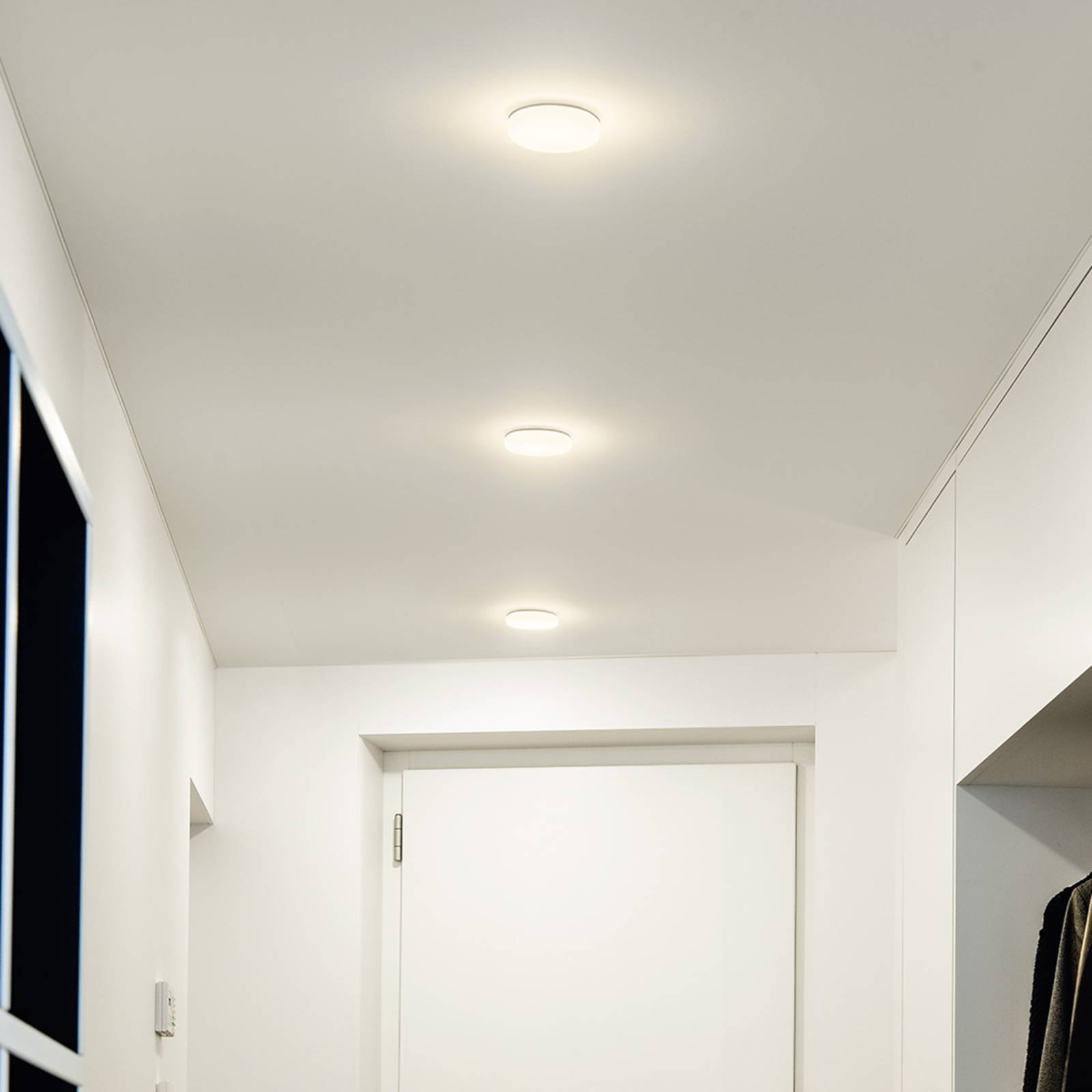Apparecchio a plafone Punto LED - per montaggio a parete o a soffittoCome apparecchio a plafone estremamente piatto, Punto LED si adatta in modo flessibile a qualsiasi struttura di ambiente. La sua struttura robusta e ottimizzata dal punto di vista termico garantisce la massima affidabilità. - Diffusore in vetro sintetico opalino- alimentatore elettronico 230 V/50 - LED CRI 80, integrato- classe di protezione IP34- classe di protezione I- adatto per aree esterne protetteQualità svizzera!