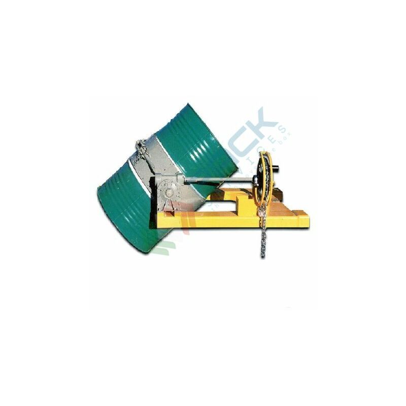 RIBALTAFUSTI FRONTALE MANUALE PER FUSTI IN METALLO Ribaltafusti frontale manuale per fusti standard petroliferi in metallo. Ribaltatore inforcabile ad azionamento manuale realizzato in acciaio verniciato. Mis. 1300 L x 1050 P x 450 H mm Portata 500 Kg Peso 100 Kg Ribaltatore inforcabile manuale per fusti standard petroliferi in metallo: Rotazione frontale continua a 360° nei due sensi Fascia di serraggio H 230 mm completamente rivestita in gomma sostituibile per una migliore presa e salvaguardia del fusto Robusta maniglia di serraggio Possibilità di ruotare il fusto anche tramite catena Elevata stabilità nella posizione di fusto inclinato Staffa di bloccaggio per un'applicazione veloce e sicura sulle forche del muletto Tutti i nostri modelli sono certificati e corredati di libretto uso e di manutenzione.
