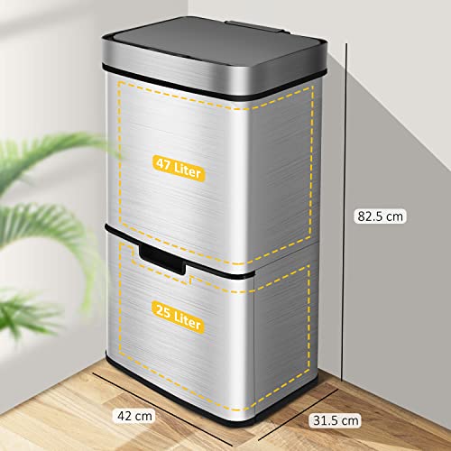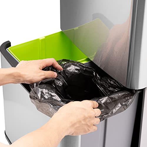 Il cestino misura circa 42 x 31,5 x 82,5 centimetri. Il volume totale è di circa 71 litri, con il bidone più grande che offre uno spazio di stoccaggio di 48 litri
