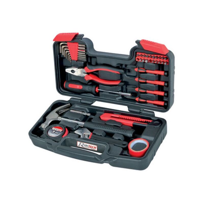 Valigetta in PVC composta da: Martello da carpentiere. Pinza universale in acciaio al carbonio L. 150 mm. Chiave a rullino in acciaio al carbonio L. 150 mm. Cacciavite portainserti magnetico. Porta inserti magnetico 60 mm. Cutter lama 18 mm. Flessometro autobloccante 3 m. Nastro isolante 3 m. 4 cacciaviti di precisione. n. 20 inserti di fissaggio 25 mm. 3,4,5,6,PH1, PH2, PH3, PZ1, PZ2, PZ3, T10, T15, T20, T25, T27, T30, H3, H4, H5, H6. 8 chiavi 6 sezioni: 1,5 - 2 -2,5 -3 - 4 -5 -5,5 -6. (DianFlex) 40 pz