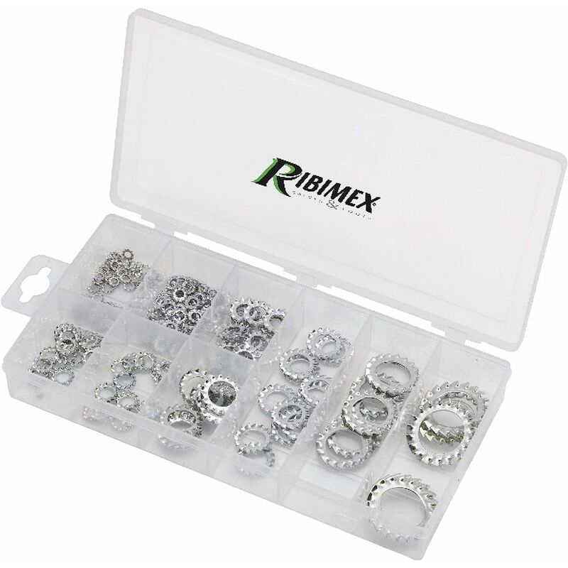 In acciaio galvanizzato. Assortimento misto: Ø M3, M4, M5, M6, M8. In cassetta plastica. 3700194412142
