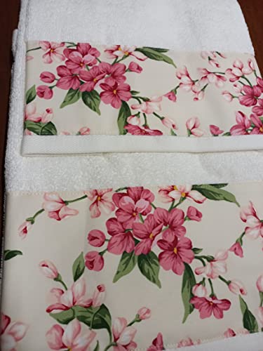 Ricami fiorentini Set Asciugamani per Bagno Viso + ospite. Cotone 100%, 420 gr/mq. Fondo Tinta Unita con Balza Fantasia. Idea Regalo. (Fiore)
