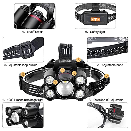 Ad alte prestazioni: questa torcia da testa dispone di 5 LED Cree ultra luminosi 5000 lumen. Più luminoso, più forte e più a lungo per un uso costante. Le torce da testa a LED Zukvye sono fornite in un solido involucro in alluminio sono costruite per resistere a tutti i lavori e alle condizioni atmosferiche, dal calore estremo al freddo delle ossa. Il proiettore può essere ruotato di 90 gradi. può portare la tua famiglia escursioni e spelunking in sicurezza