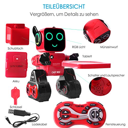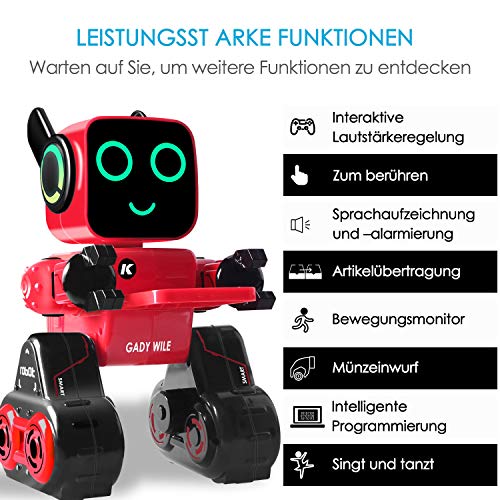 Ricaricabile Robot per bambini, Remote Controlled Giocattolo Intelligent Robot Tocca Interattivo, Parla, Gioca musica, Camminare, Danza, con Built-in Salvadanaio, Kit RC Robot per Ragazze (Rosso)