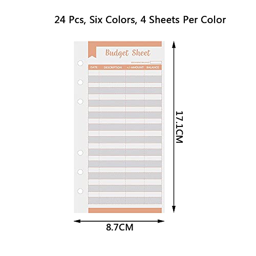 Set di 24 ricariche per quaderni, 6 fori, fogli sfusi, per budgeting portafoglio Planner (RC-024)