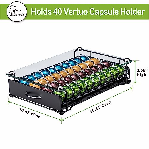 Rice rat Vertuo, Cassetto porta capsule per Nespresso, con vetro, per armadietto, Vertuoline, per bancone (capsule classe 40 (con manico))